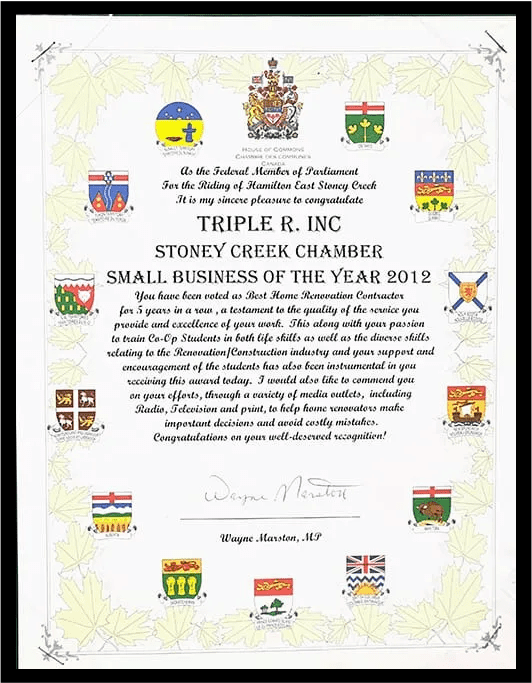 Triple R Inc. is licensed (city of Hamilton Master Building Repair) to perform home renovations, we are insured (commercial liability) and carry WSIB (workplace safety insurance board) coverage. What does this mean? Zero liability/risk to you the homeowner; you are always fully protected.